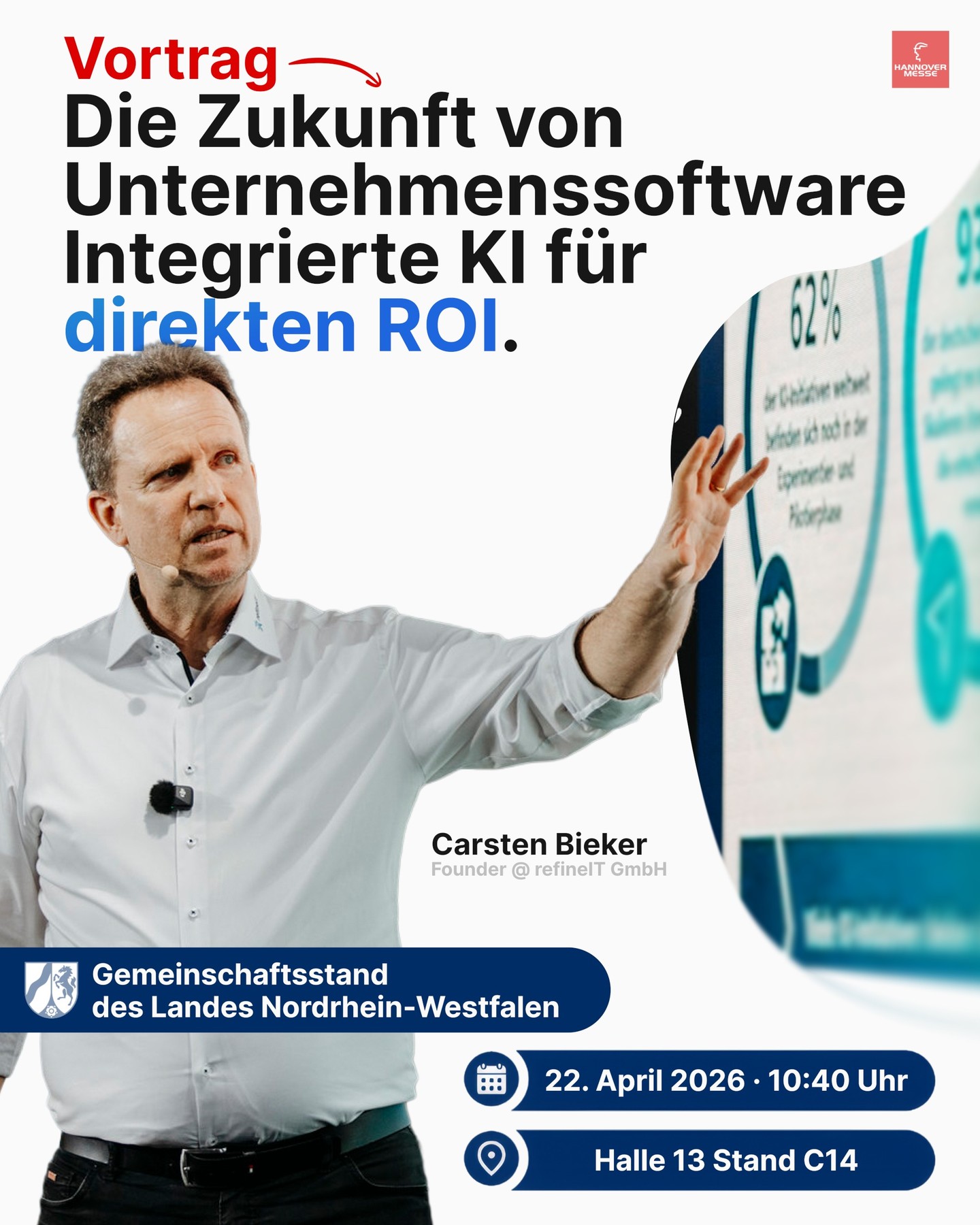 Hannover Messe 2026 - ganz im Zeichen der künstlichen Intelligenz. Während gegenüber am Stand der Europäischen AI Initiative die Lösungen zur Automatisierung der Produktion - wir zeigen am Landesstand NRW mit AVIOR unsere Lösung zur Automatisierung von Geschäftsprozessen 👉 Mit integrierter AI zur mehr Performance in Vertrieb und Projekten. Treffen Sie uns in Halle 13 am Stand C14. #ai #rpa #automation #crm @meetavior @refineit_de @hannover_messe #hm26 @wirtschaftnrw